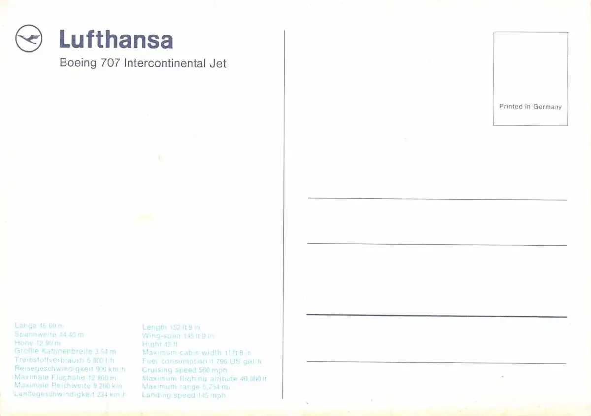 Lufthansa Boeing 707 Intercontinental Jet ngl 151.735