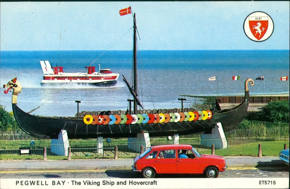 Luftkissenboot Hovercraft Pegwell Bay England, Viking Ship 1970