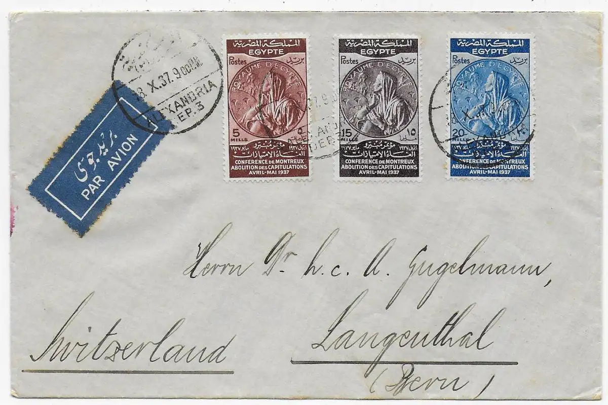 Luftpost 1937 Alexandria nach Langenthal/Schweiz
