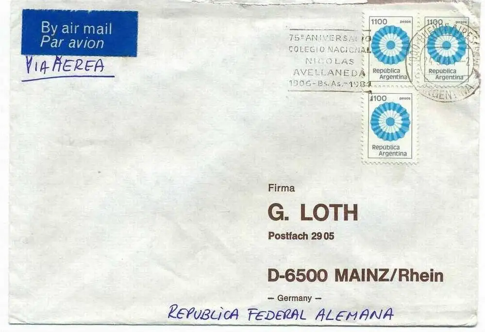 Luftpost-Brief, 24.09.1981, Buenes-Aires – Mainz, Mischfrankatur, sauber gest., Maße. 16 x 11,5 cm