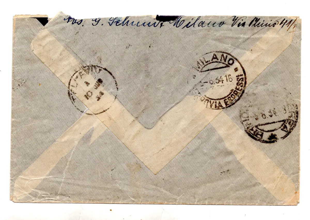 - Luftpost Cent. 25 Nr. 10 Dreierstreifen + ergänzende Kaiserliche Lire 1,25 auf Luftumschlag (Poststopp) für Palästina am 3.6.34 auf dem Luftweg aus Brindisi - leichte Mängel aber ungewöhnlich für Fachmann Nr. 187/18