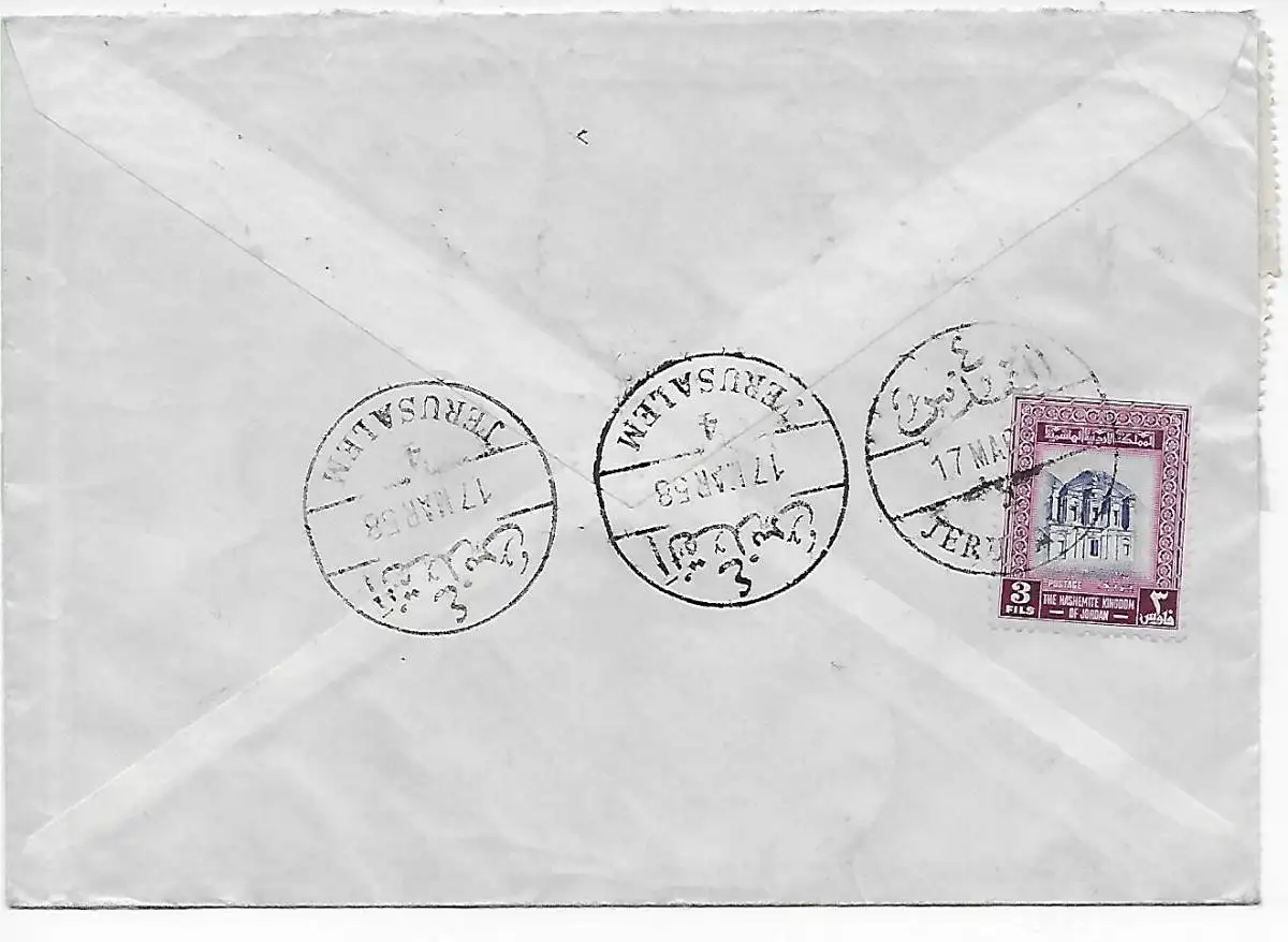 Luftpost Einschreiben Jerusalem nach Fulda 1958