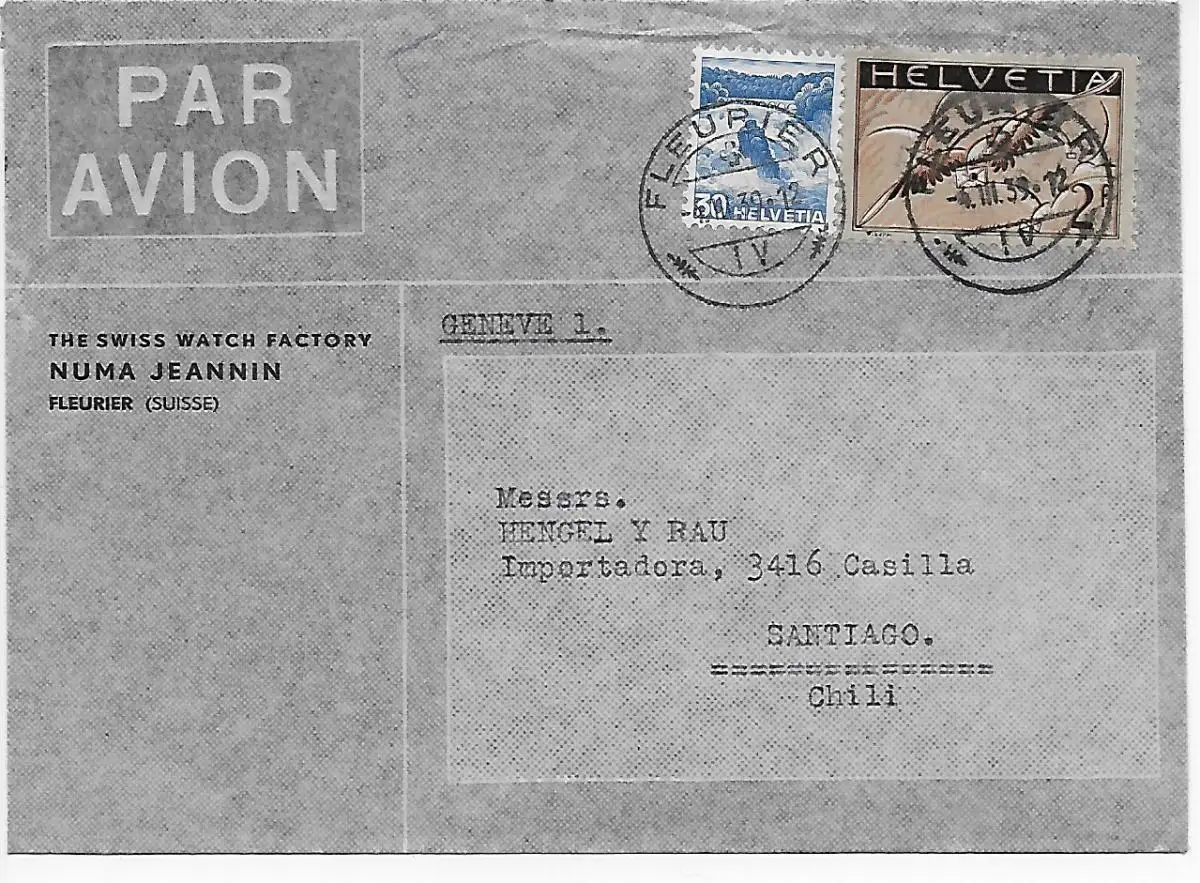 Luftpost Fleurier nach Satiago/Chile, 1939