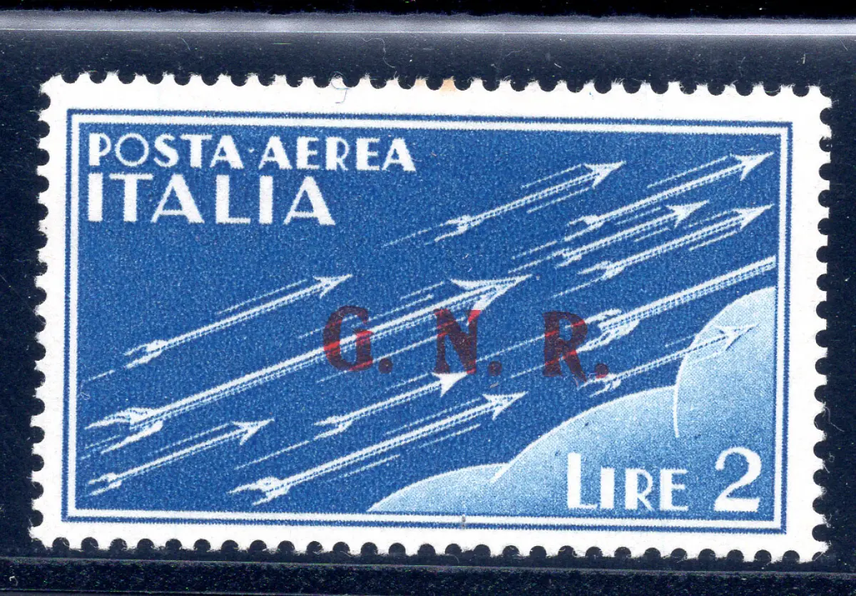 Luftpost GNR Lire 2 Brescia Aufdruck des Typs III mit Spur von Linguella - Luftpost GNR Lire 2 Brescia Nr. 125/III Aufdruck Typ III - sehr gut zentriert mit leichten Linguella-Spuren - Ray. - Kat. 1.500 Euro - Gebraucht Code 322/11