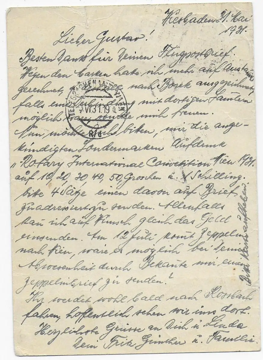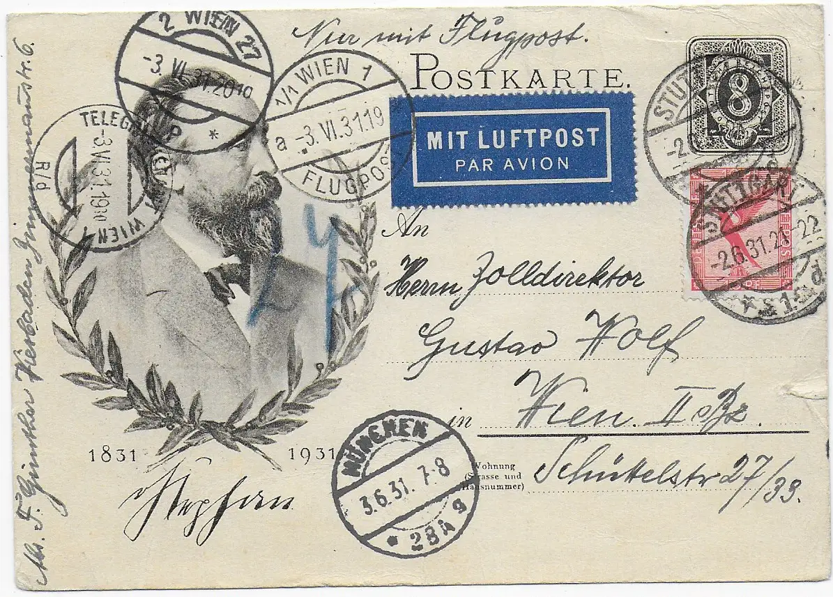 Luftpost Ganzsache von Stuttgart 1931 nach Wien