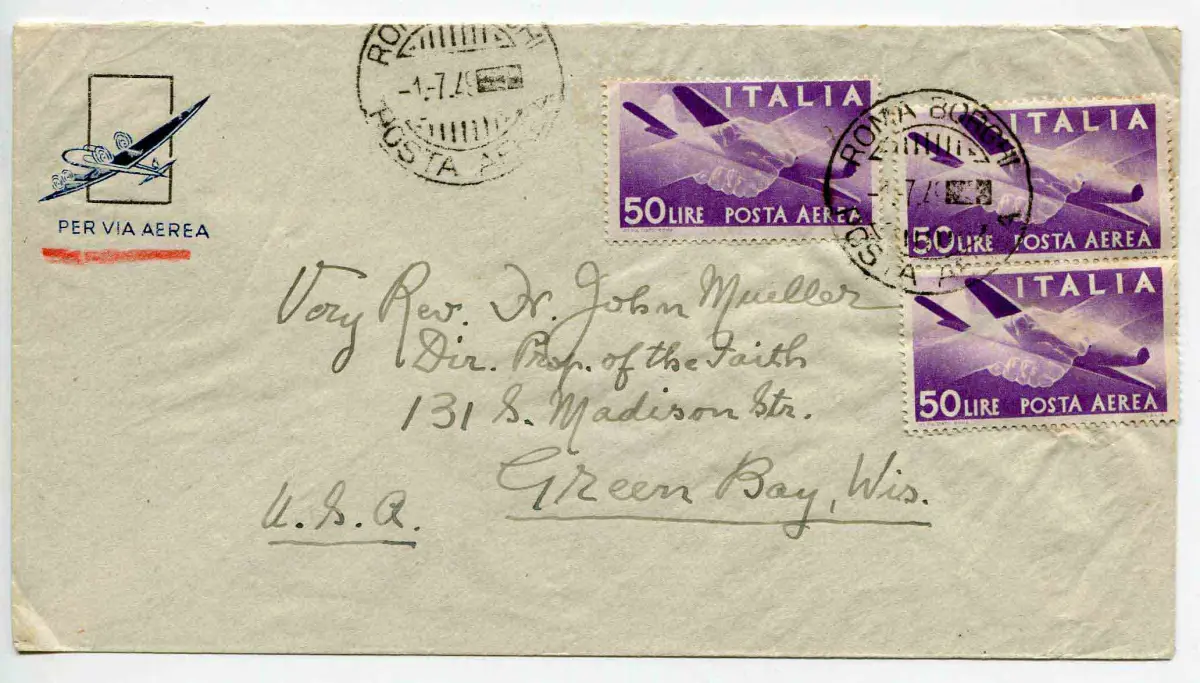 Luftpost Lire 50 drei Exemplare für die USA UMSCHLAG - Luftpost Lire 50 Nr. 134 drei Exemplare auf Luftumschlag für die USA am 1.7.49 - im Tarif Nr. 489/6