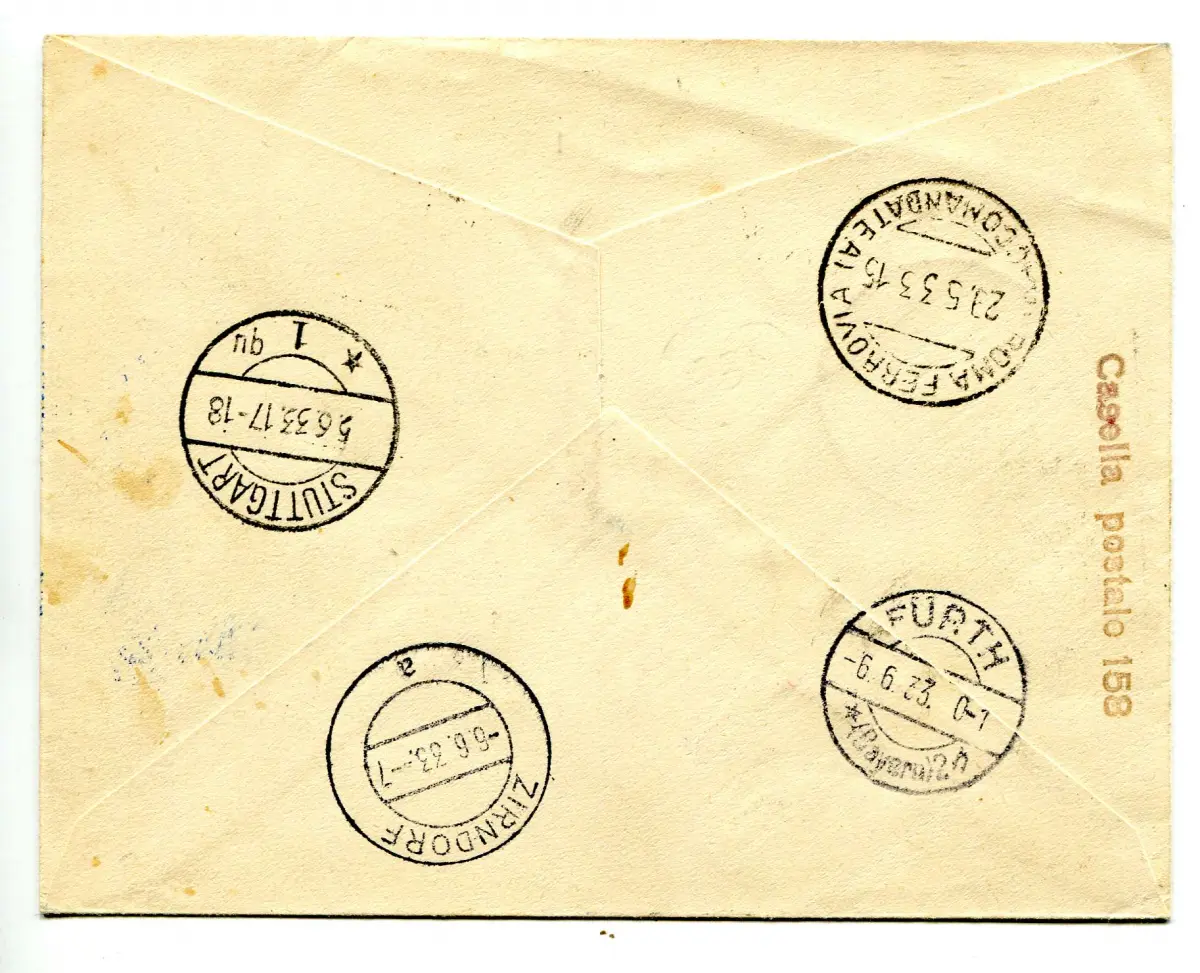 Luftpost Zeppelin Lire 5 auf Aerogramm Racc. für Deutschland