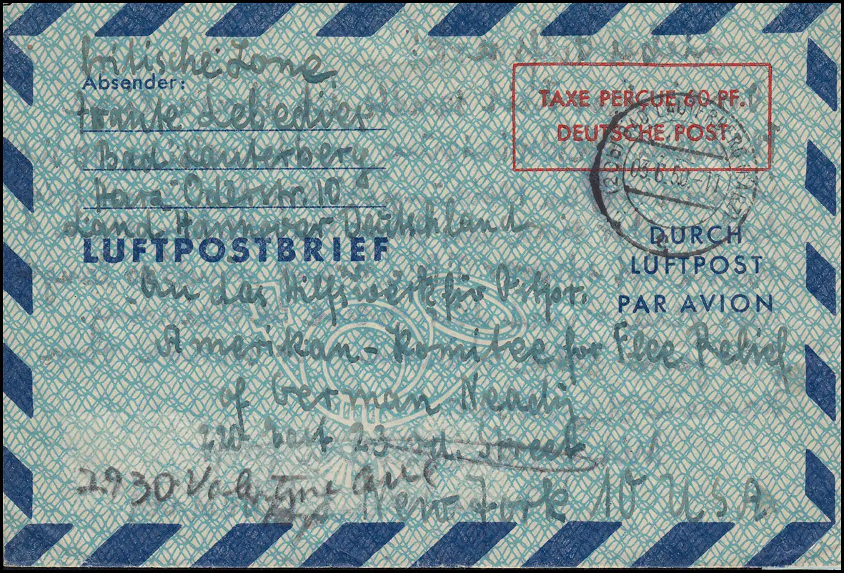 Luftpostfaltbrief LF 4 zu 60 Pf. Wertrahmen 45,5 mm lang, BAD LAUTERBERG 3.6.50