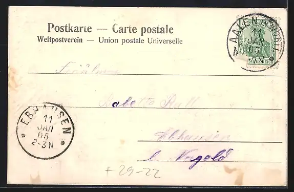 alte Ansichtskarte, gelaufen 1905, guter Zustand