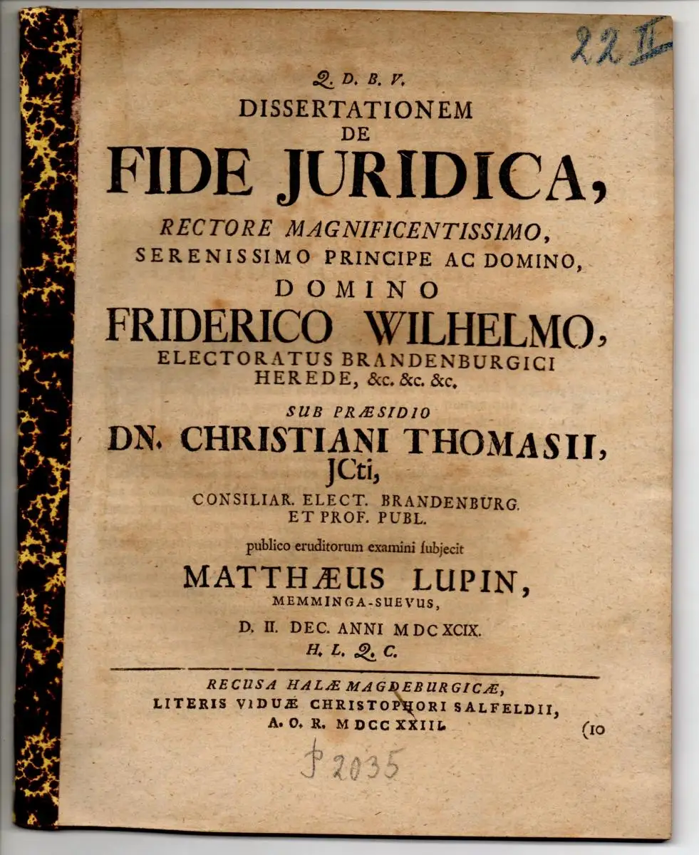 Lupin, Matthäus: aus Memmingen: Juristische Dissertation. De fide iuridica.
