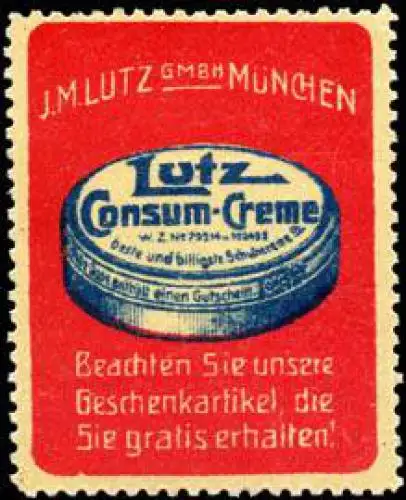 beachten Sie unsere Geschenkartikel, die Sie gratis erhalten ! Schucreme, Größe/Zustand: 4x4 , guter Zustand, Original alte Reklamemarke die seinerzeit für die Werbung benutzt wurde