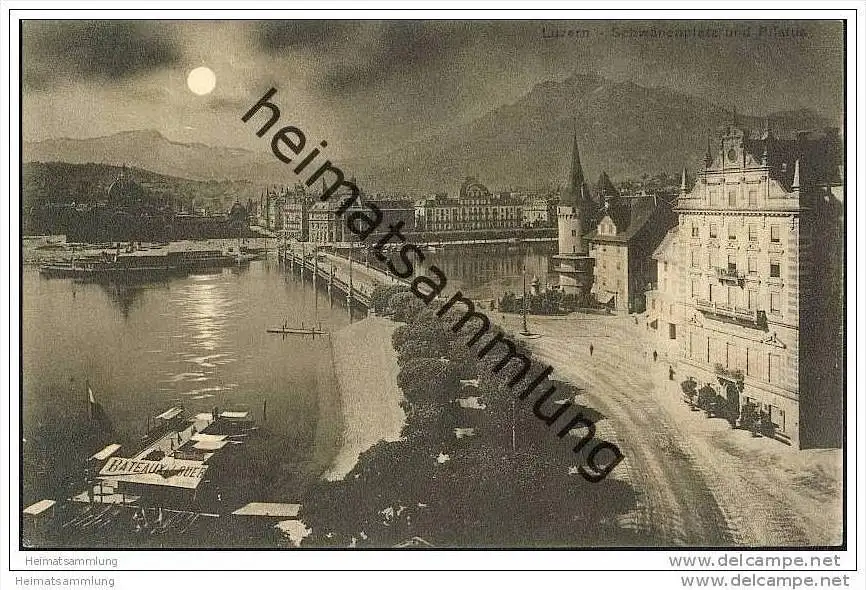 Luzern bei Nacht - Schwanenplatz - Editeur Timothee Jacot Neuchatel 20er Jahre (G18594) *
