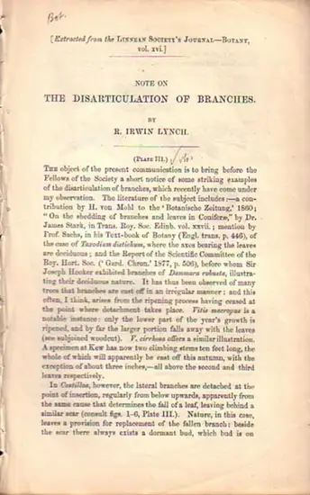 Lynch, R. Irwin: Note on the Disarticulation of branches. Extracted from the Linnean Society´s Journal-Botany, Vol. XVI.