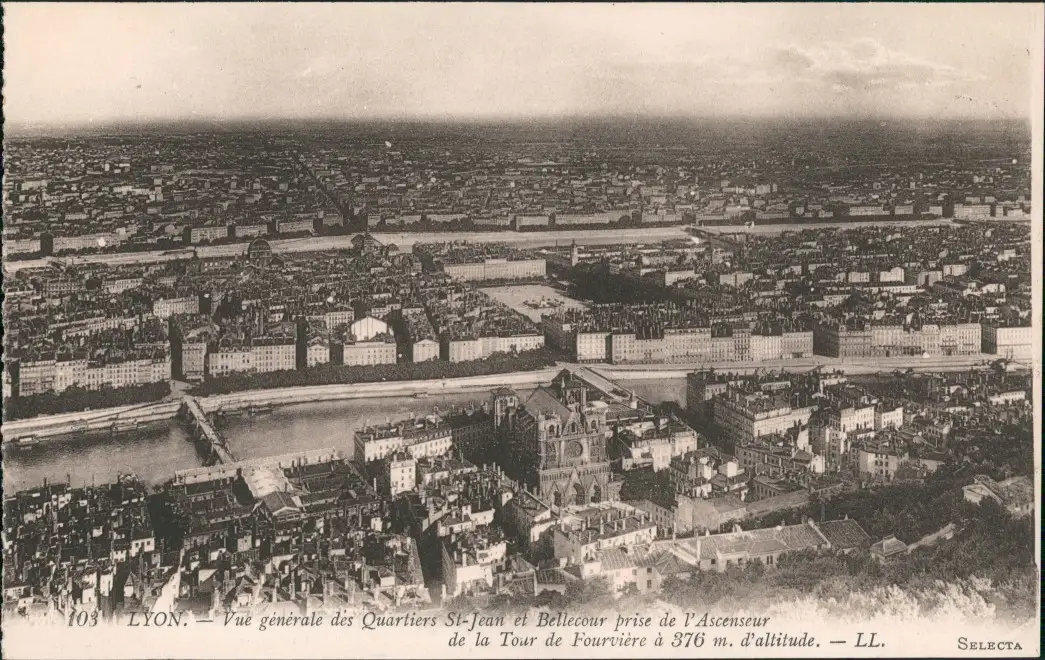 Vue générale des Quartiers St-Jean et Bellecour prise de l'Ascenseur