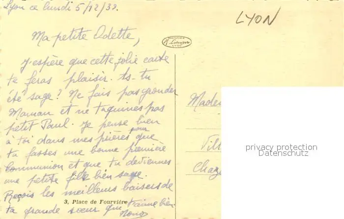 Lyon_France Chapelle intérieur Lyon France postalisch nicht gelaufen 1932 Erhaltung siehe scans [FriedD77] Frierer