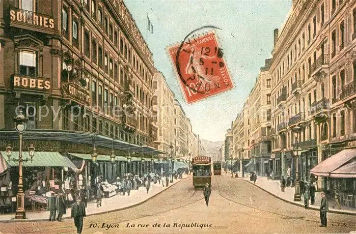 Lyon_France La ru de la Republique Lyon France postalisch gelaufen 1911 Erhaltung siehe scans [WerneD78] WernPID7
