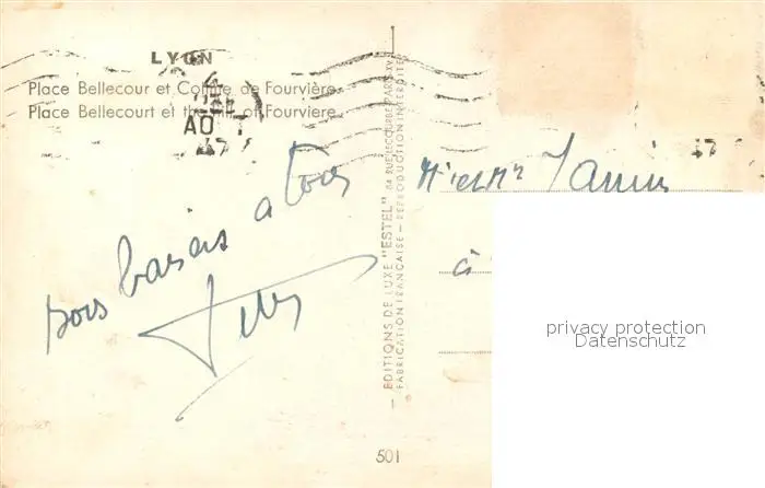 Lyon_France Place Bellecour et Colline de Fourvière Lyon France postalisch gelaufen 1921-1965 Erhaltung siehe scans [FriedD77] Frierer