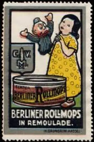 Berliner Rollmops, Handpuppe, Spielzeug, Größe/Zustand: 6x4 , guter Zustand, Original alte Reklamemarke die seinerzeit für die Werbung benutzt wurde