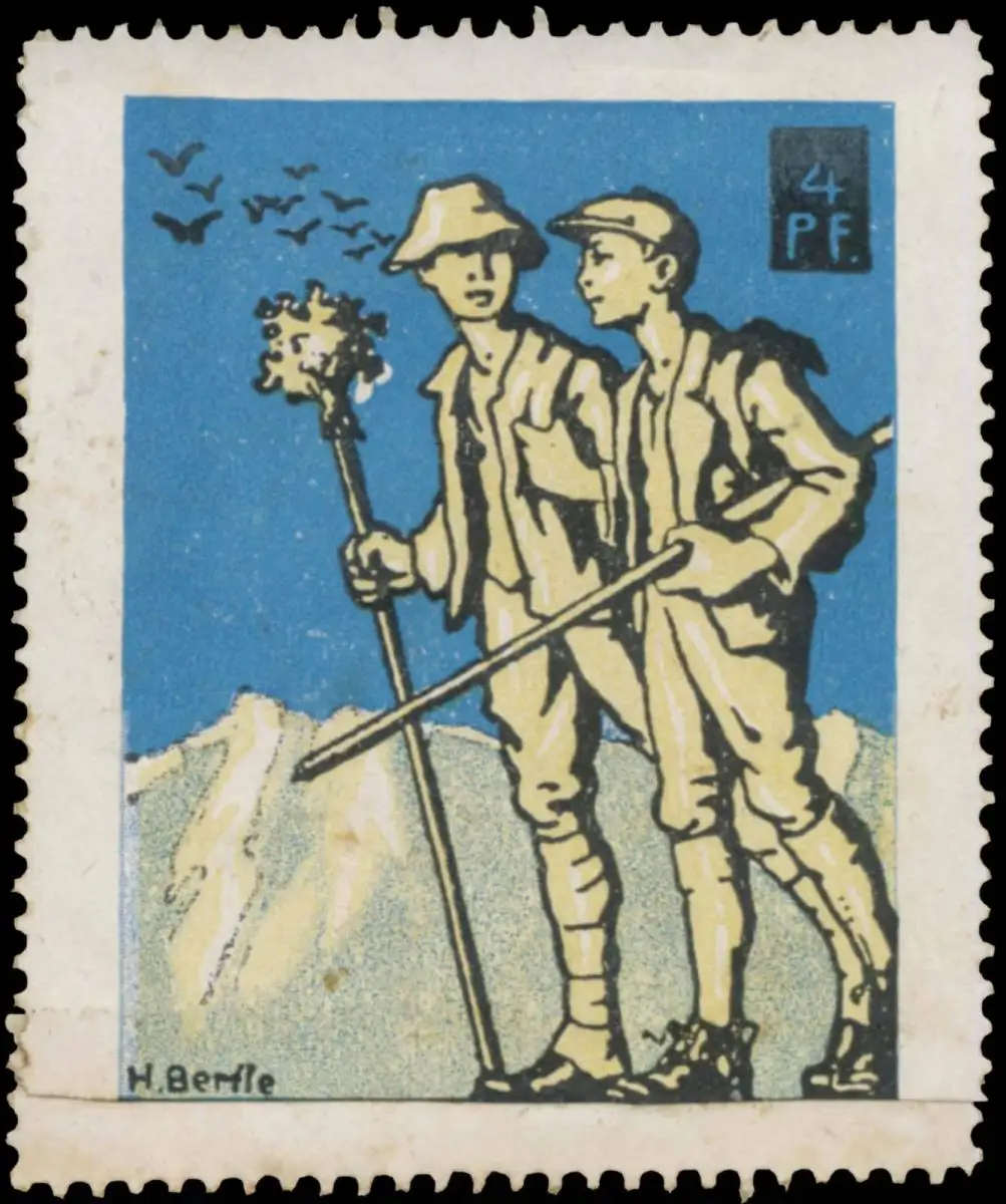 Spendenmarke, Kinder, wandern, Größe/Zustand: 5x4 , fleckig, Original alte Reklamemarke die seinerzeit für die Werbung benutzt wurde