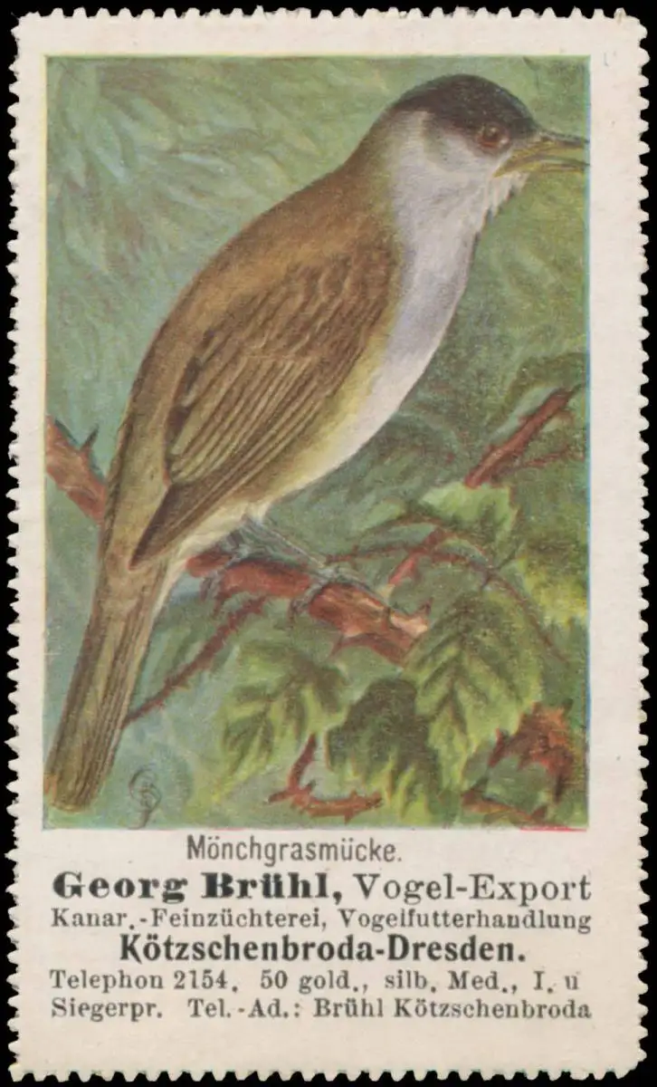 Vogel-Export, Kanar- und Feinzüchterei, Vogelfutterhandlung, Rückseite beschriftet: Vogelreklamemarken der Thüringer Kunstanstalt GmbH, Gera-Untermhaus, Größe/Zustand: 7x4 , guter Zustand, Original alte Reklamemarke die seinerzeit für die Werbung benutzt wurde