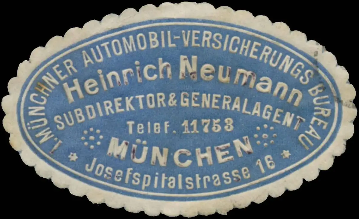 Subdirektor & Generalagent, Josefspitalstraße 16, Größe/Zustand: 4x6 , fleckig, Original alte Reklamemarke die seinerzeit für die Werbung benutzt wurde