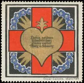 Liebes goldenes Münchner Herz, lindre weiter Sorg und Schmerz. Druck: Consée, München , Größe/Zustand: 5x5 , guter Zustand, Original alte Reklamemarke die seinerzeit für die Werbung benutzt wurde