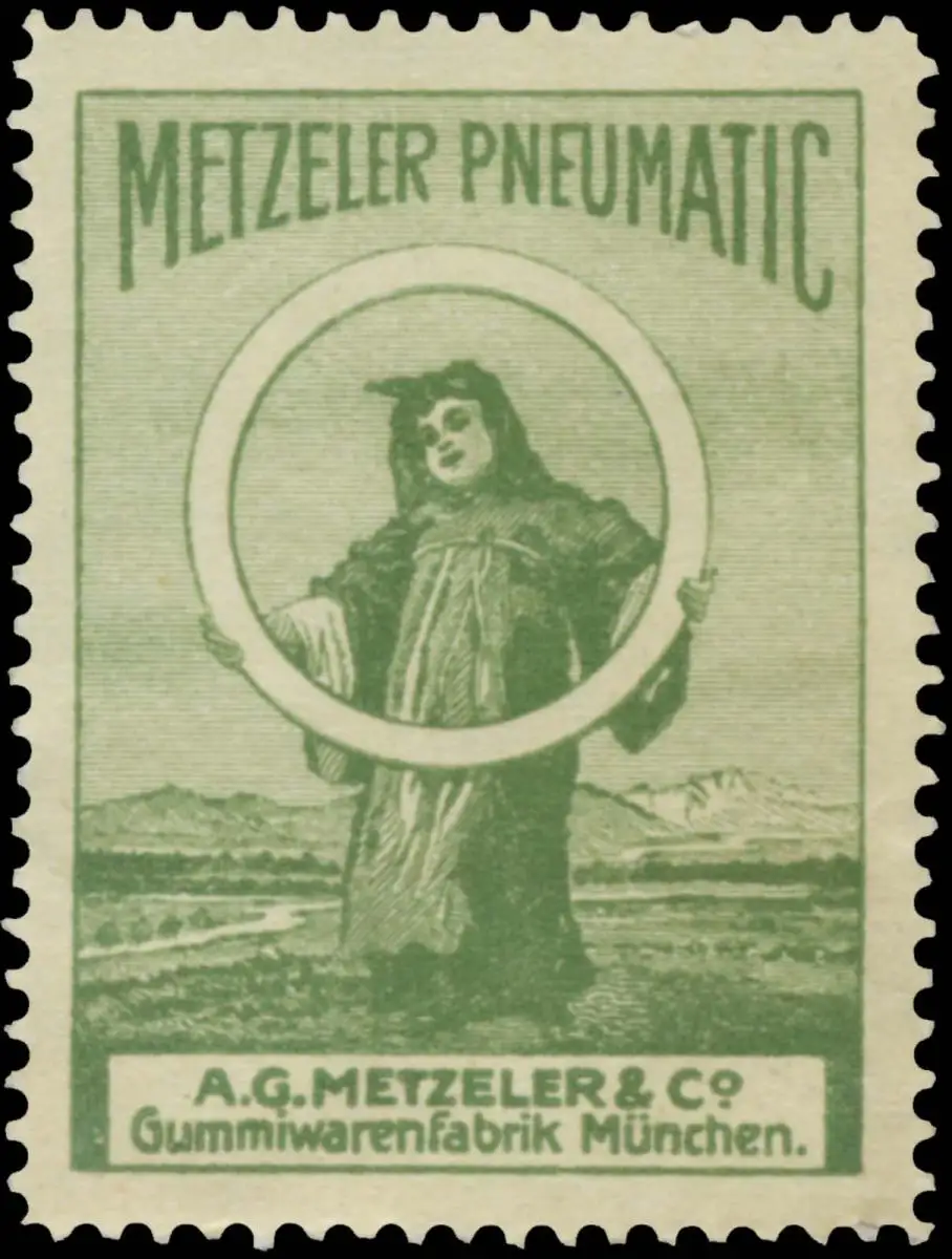 Fahrrad-Reifen, Gummiwarenfabrik, grün, Größe/Zustand: 4x3 , guter Zustand, Original alte Reklamemarke die seinerzeit für die Werbung benutzt wurde