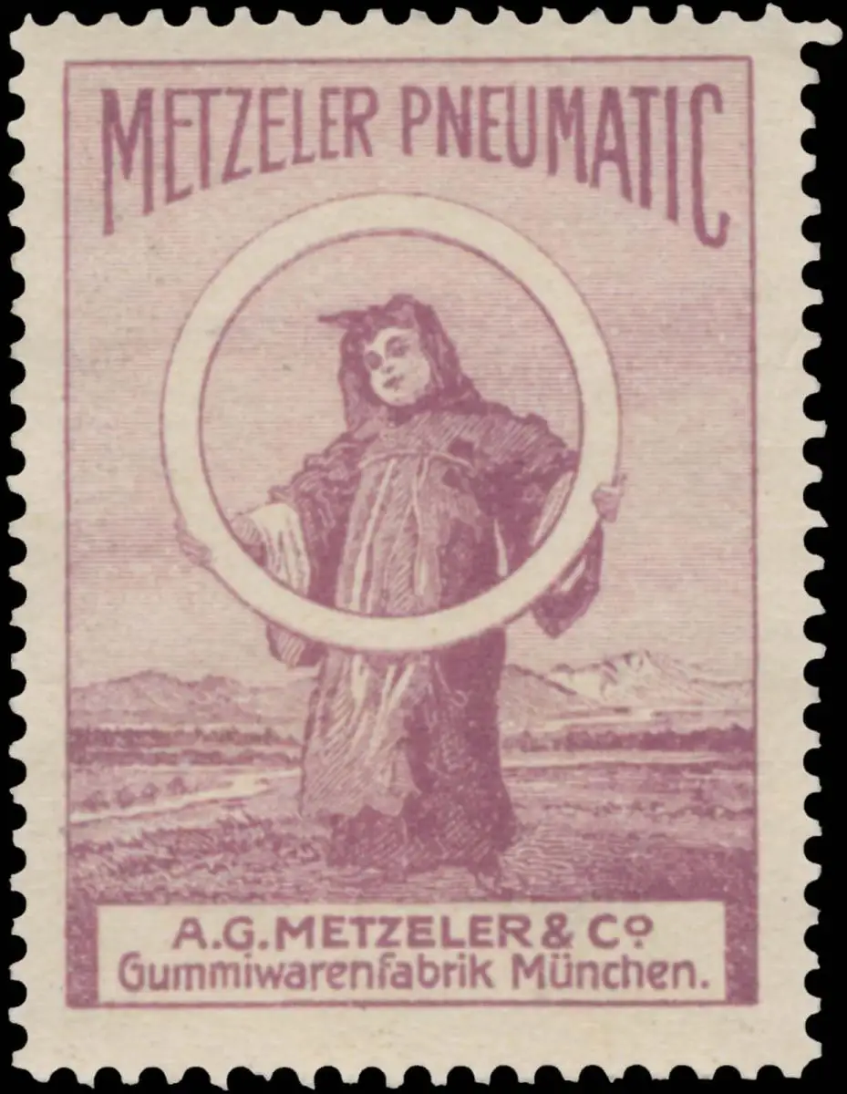 Fahrrad-Reifen, Gummiwarenfabrik, violett, Größe/Zustand: 4x3 , guter Zustand, Original alte Reklamemarke die seinerzeit für die Werbung benutzt wurde