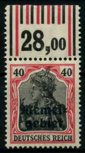 40 Pfg Wert aus der Freimarkenausgabe Germania mit Aufdruck "Memelgebiet"