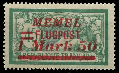1,50 M auf 45 C Wert aus der Freimarkenausgabe von Frankreich "Memel", Aufdruck kursiv, Flugpostausgabe