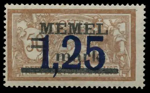 1,25 auf 1 m auf 50 C Wert aus der Freimarkenausgabe von Frankreich "Memel", Aufdruck gerade