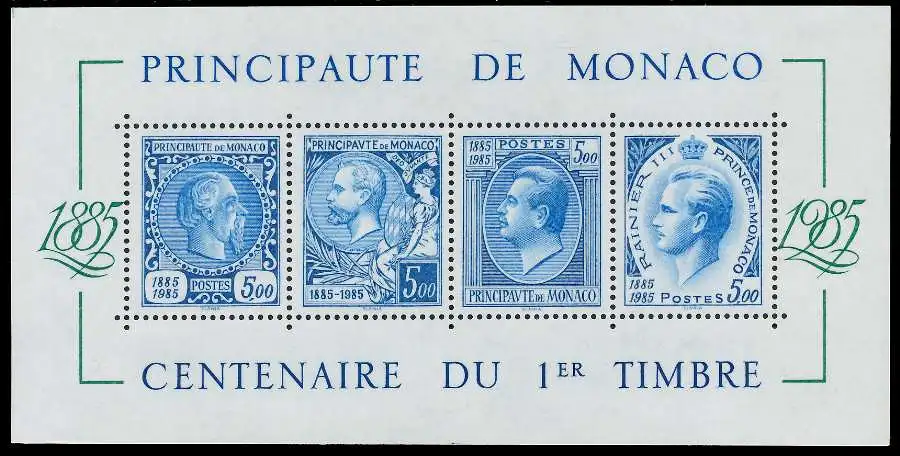 Block 31 100 Jahre Briefmarken von Monaco (MichelNr.: 1727, 1728, 1729, 1730)