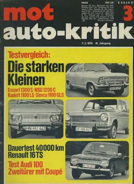 Ford Escort 1300 S / NSU 1200 C / Opel Kadett S/SL / Simca 1100 GLS Audi 100 und Audi Coupé Renault 16 TS Leichte Gebrauchsspuren