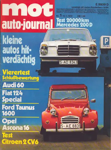Audi 60 / Fiat 124 Special / Ford Taunus 1600 / Opel Ascona 16 Teil 2 Citroen 2 CV 6 Mercedes-Benz 200 D 20000 km Leichte Gebrauchsspuren