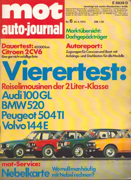 Audi 100 GL / BMW 520 / Peugeot 504 TI / Volvo 144 E Teil 1 Mercedes-Benz 450 SE / SEL / SL / SLC Alfa Romeo Alfasud Varianten Ford Capri Ford Consul / Granada Zweitürer Citroen 2 CV 6 40000 km Leichte Gebrauchsspuren