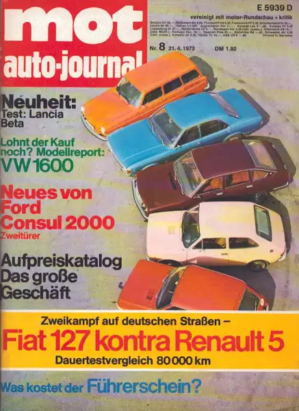 Lancia Beta 1800 LX Ford Consul 2000 zweitürig Fiat 127 / Renault 5 40000 km Vergleich VW 1600 Typ 3 Leichte Gebrauchsspuren