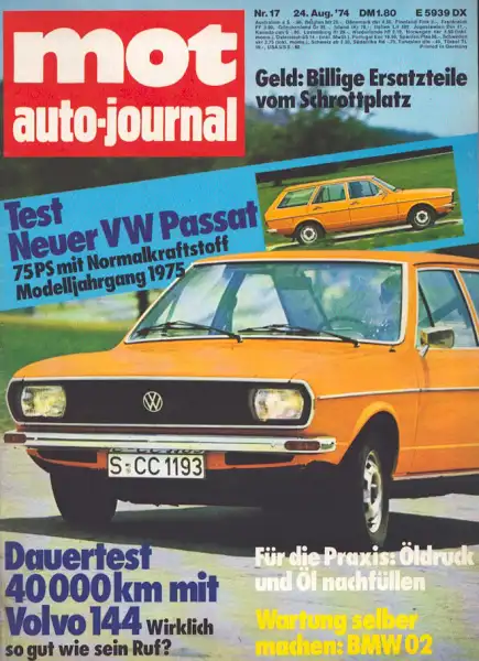 VW Passat 1500 N Volvo 144 E/A 40000 km Leichte Gebrauchsspuren