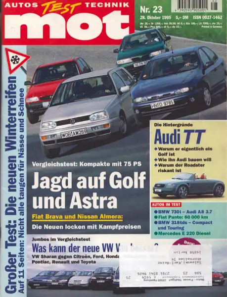 Fiat Brava 1.4-12V SX / Nissan Almera 1.4 GX / Opel Astra GL 1.6i / VW Golf GL 1.6 Renault Mégane VW Sharan 2.0 gegen 8 Konkurrenten Chrysler Voyager 96 Audi A 8 3.7 / BMW 730i Fiat Punto 60 SX 60000 km Leichte Gebrauchsspuren