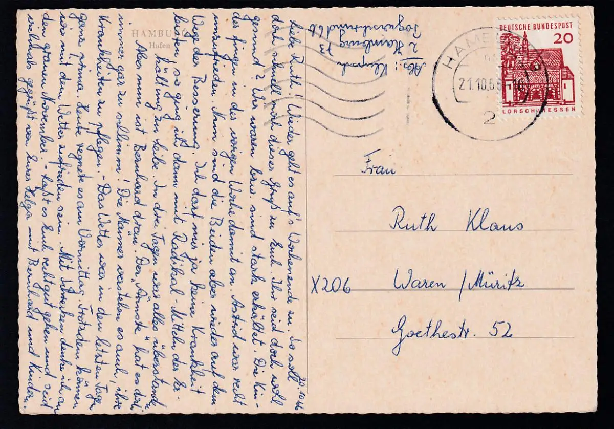 zwei sehr schöne Bahnpostbelege, einmal HUSUM-GARDING von 1916 - ohne Zugnummer aufgrund der Furcht vor feindlicher Spionage - und ERFURT-EISENACH von 1965. Vielen Dank, bin mit der Lieferung sehr zufrieden.