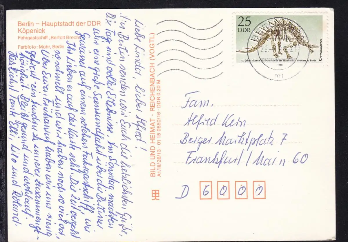 zwei sehr schöne Bahnpostbelege, einmal HUSUM-GARDING von 1916 - ohne Zugnummer aufgrund der Furcht vor feindlicher Spionage - und ERFURT-EISENACH von 1965. Vielen Dank, bin mit der Lieferung sehr zufrieden.
