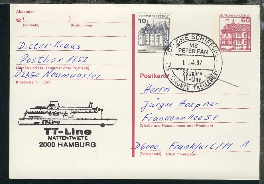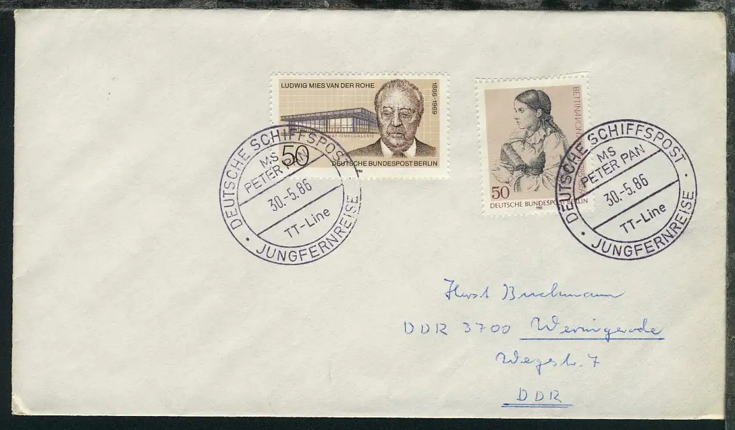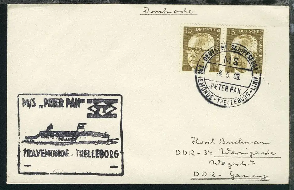 MS Peter Pan 12 Belege mit diversen Stpln + Cachets