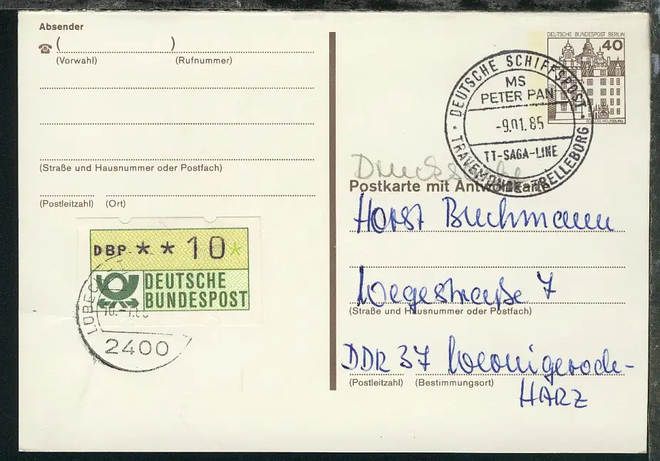 zwei sehr schöne Bahnpostbelege, einmal HUSUM-GARDING von 1916 - ohne Zugnummer aufgrund der Furcht vor feindlicher Spionage - und ERFURT-EISENACH von 1965. Vielen Dank, bin mit der Lieferung sehr zufrieden.
