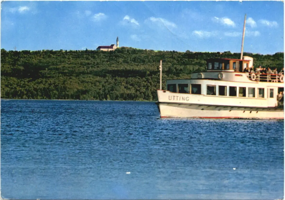 MS Utting auf dem Ammersee mit der Klosterburg Andechs -547426