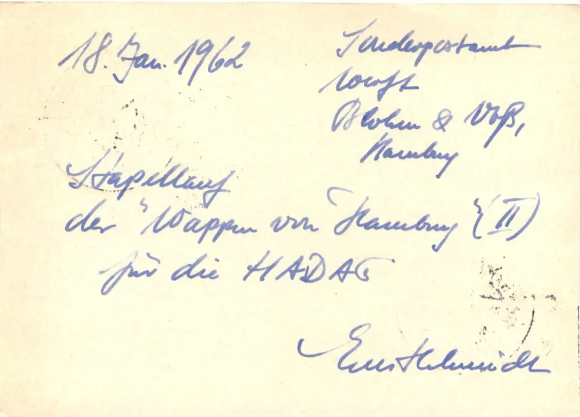 MS Wappen von Hamburg - Stempel Stapellauf -682438