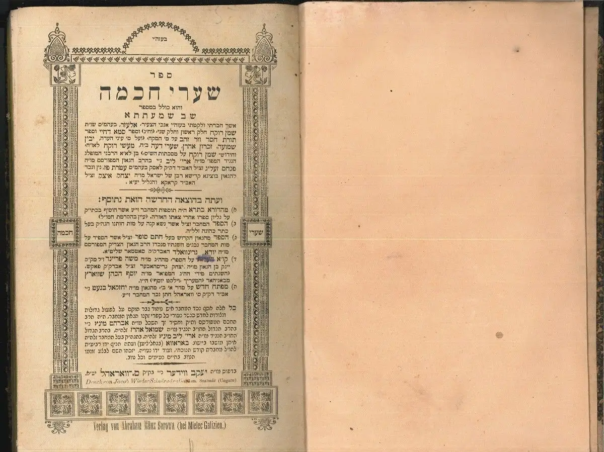 Borowa, Vlg. v. Abraham Münz (Druck v. Jacob Wieder, Szinérváralja) 1907. 2°. [9], 111, [1], 20, [8] HLn.d. Zt. Stärker berieb. Lagerungsspuren.