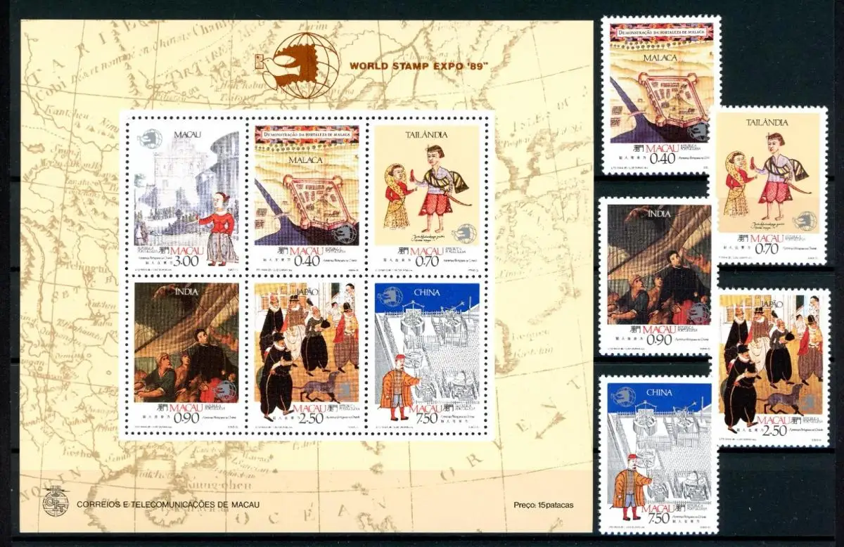 Macau 633-637 + Block 12 postfrisch WORLD STAMP EXPO ’89 #JL375