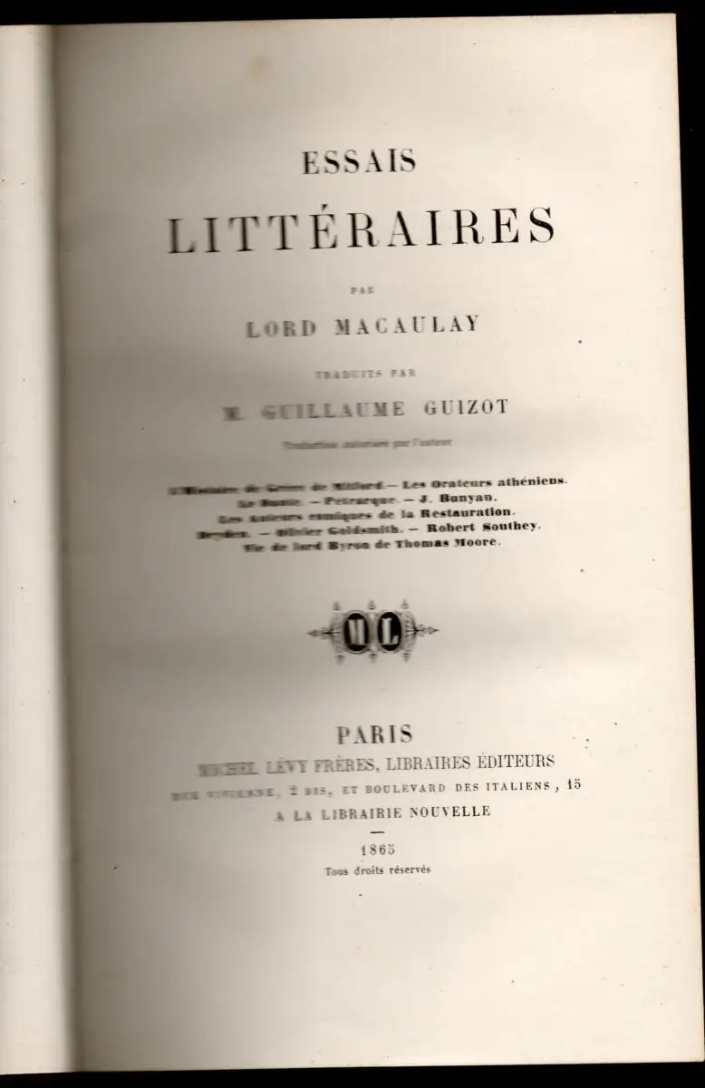 414 S., 21 cm, Halbledereinband der Zeit leicht berieben, goldgeprägte Rücken, gebräunt. traduits par M. Guillaume Guizot.