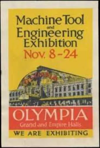 and Engeneering Exhibition, Olympia, Größe/Zustand: 6x4 , guter Zustand, Original alte Reklamemarke die seinerzeit für die Werbung benutzt wurde