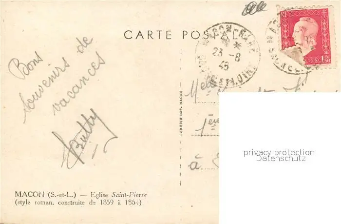 Macon_Saone-et-Loire Eglise Saint Pierre Macon Saone-et-Loire postalisch gelaufen 1946 Erhaltung siehe scans [LiesaD40] LiesID40