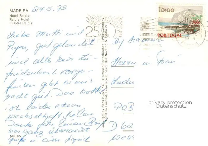 Madeira Hotel Reid's Madeira postalisch gelaufen 1979 Erhaltung siehe scans [FriedD77] Frierer